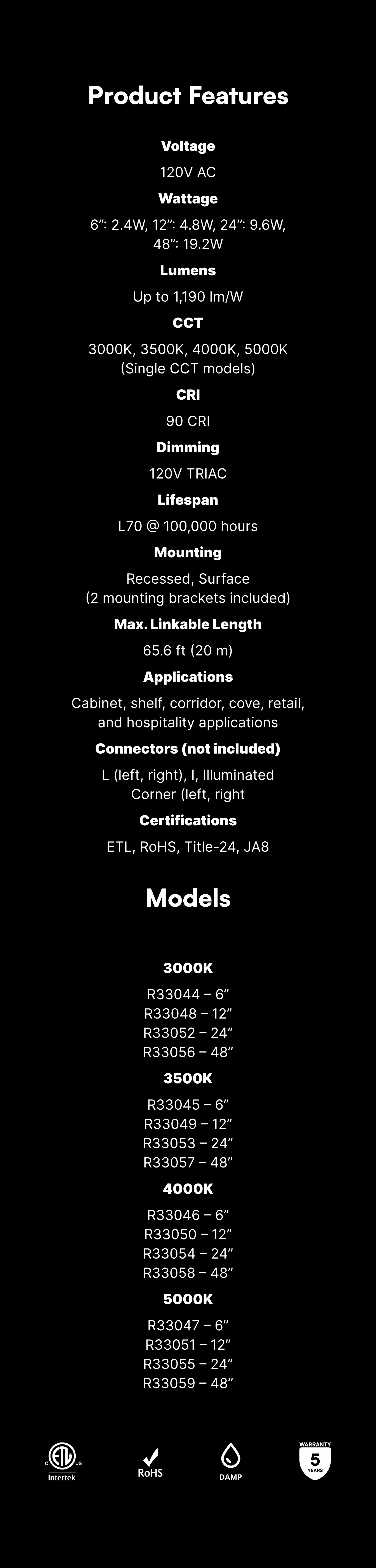 ETL, RoHS, Title-24, JA8
